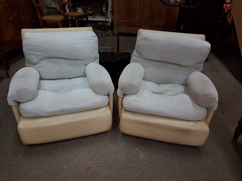 paire de fauteuil en velour et cuir signé ligne roset vers 1970 pour 160€ la paire