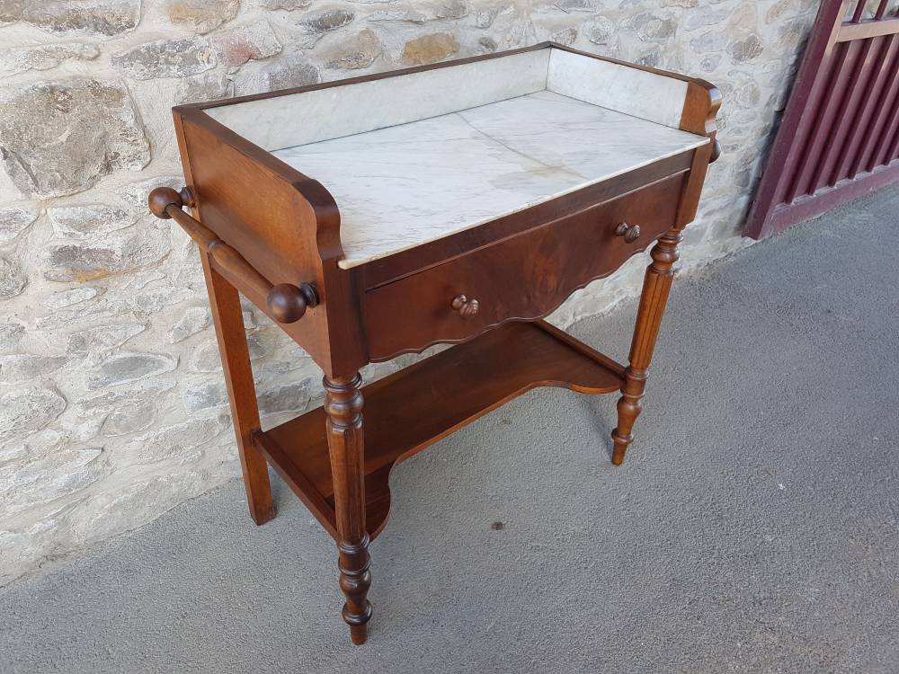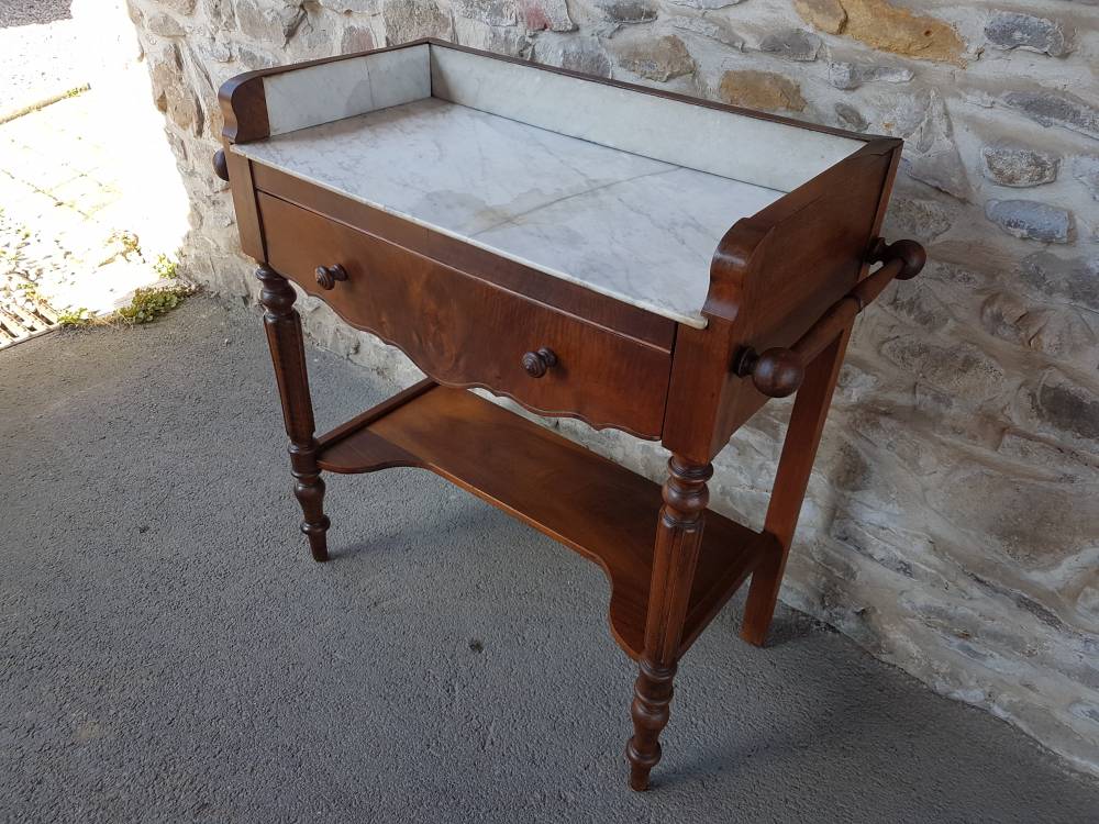 ancienne petite coiffeuse de style louis philippe, le marbre est fissuré