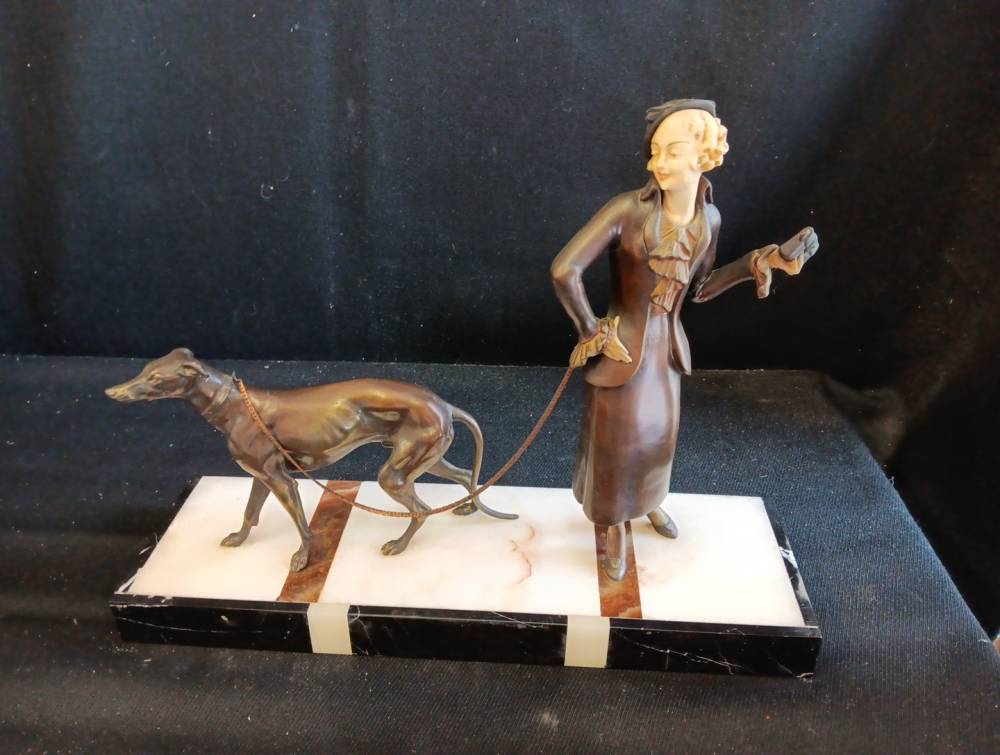 statue art déco femme au lévrier